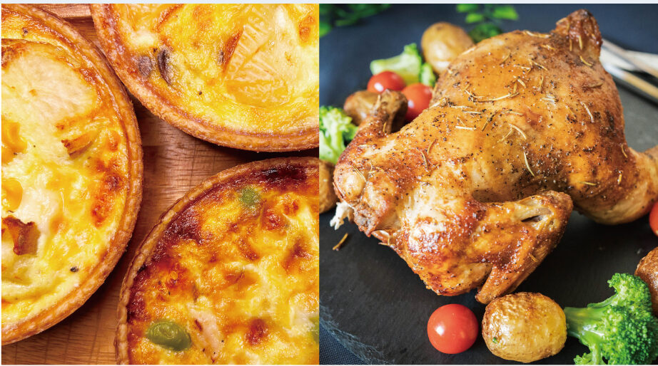 キッシュは、「中札内田舎どりと枝豆」「ブルーチーズ空とポテト」「とかちマッシュとカマンベール」「椛とホタテ」の4種を用意。焼きたてと冷凍品の販売を行います。ローストチキンは中札内田舎どりを1羽まるごと焼き上げます。20、21、24、25の4日間のみ焼きたてを、22、23の両日は真空冷蔵品を販売します。焼きたては要予約となっておりますので、お早めに。